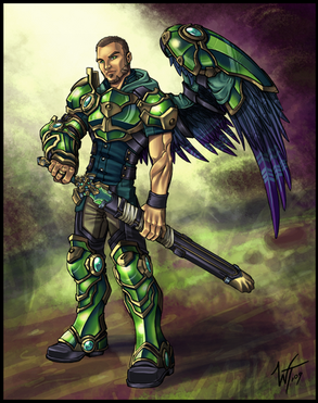 Wonderful! I love the detail and how the very edges of his wings are already in shadow. His sword is really cool too! Gorgeous!