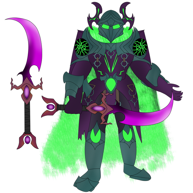 Powers: Summoning of cursed horse. Blinding shriek. Corrupting lance that extracts life essence. Control over lightining.