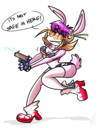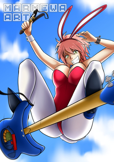 This is very evocative of the manic energy of the series. It's almost like she's blasting right through the screen. I instantly knew I had to fav this; it just immediately struck a chord within me. Heh. Guitar. Chord.
