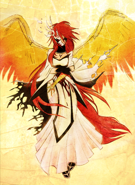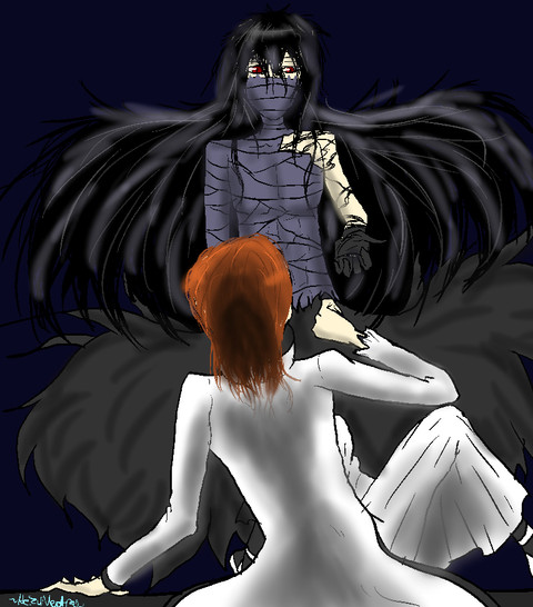 Yeah i was just watching bleach at the time and ichigo was fighting hollow ichigo, and i figured what would rukia hollow look like, and then i randomly drew it. I think her hair would probably be white though and not golden. But I remember watching some old chinese ghost story movies and they would always make the ghosts wear golden hair. Its very disturbing! In fact chinese ghost movies are very wierd if you ever watched one the actors look like they should be in a mental ward. Japanese horror thoguh seems more reserved!
