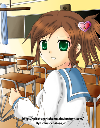 A fun side to Kuchiki Rukia. I went into kawaii mode with this one! Again its not really anywhere near anime style, I'm actually quite shocked that I let myself deviate so much away from my intended style, but nevertheless, I'm still trying to find an anime style that suits my own drawing style.Well the picture is supposed to be showing a view through a camera, which most people got (some didn't sorry for that). And thats chappy on her desk the popular soul candy!