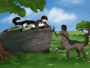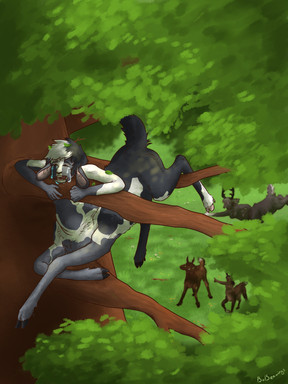 I found myself doing a different style halfway through this drawing and just went with it. I also finally got enough motivation to actually finish something I've started so yay!It's fall, the day are getting shorter, the leaves are falling from the trees and its getting colder. So some extra straw bedding is needed for Jake's loaf to nest with in the barn and while he was taking in some new bales of straw, Diddles saw and wanted to help out. He couldn't lift the bales so he took what he could carry.