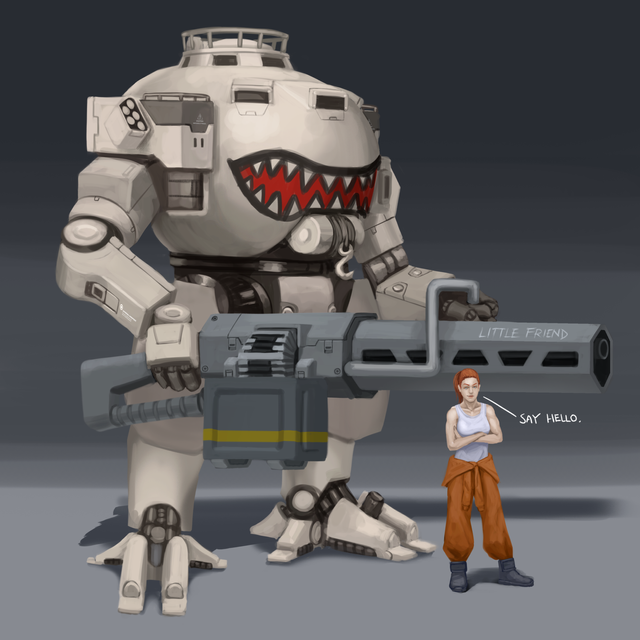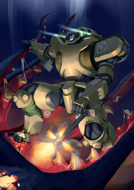 I think I'm going to have to stop drawing the same mech over and over. Start on something new for a change.This is one of my inquests into how to depict bounced light.