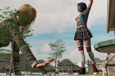 “Okay, tinies,” Alex said in an authoritative tone, as she got to her feet. “You better start running, or the giant is gonna get ya!”