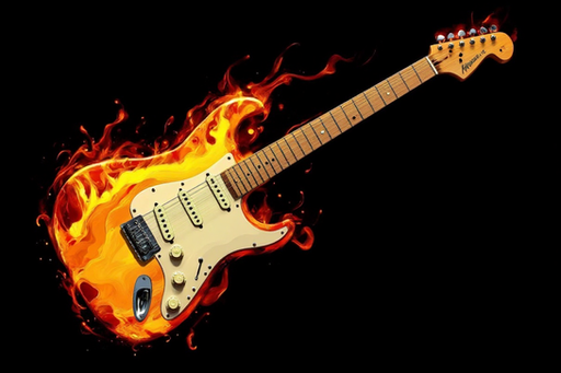 You've got some pretty good design skills, this is my fav I think. I'd also love to see it if you manipulated the colors and contrast of the guitar to match more of the design element you have going on in the background.