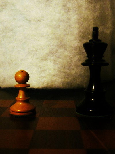 Excellent work with the focus, I love how you've almost reversed the roles here making it seem as if the little pawn is really the 'bigger' man, more pwoerful because it is so sharp compared to the actual king/queen there. Love the contrast of the black/cream too, well done
