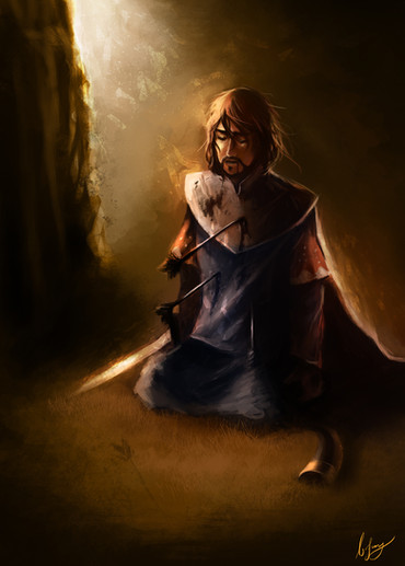 Wow!! The feeling of this piece is incredible. I especially like how you did the colors, with warm colors on one side, and cool colors on the other. And the contrast between the blues, darker reds, oranges and the thing on his shoulder (it reminds me of a butterfly ) is also very striking. Congratulations on the well-deserved DD!!