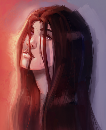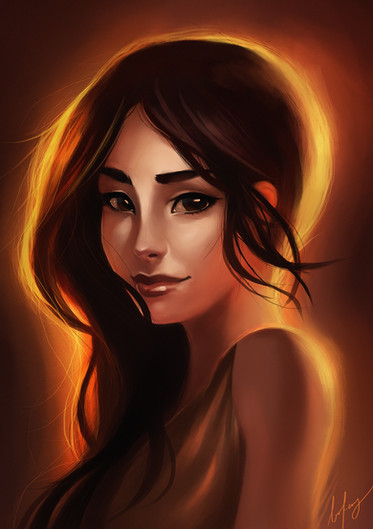 I love her expression, so sweet and yet so sad. Could be explained by the fact that it looks like she might be standing in front of a fire. Looking into her love's eyes for the last time? Who knows...