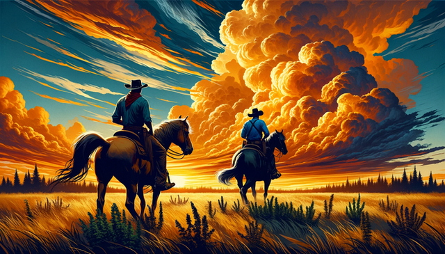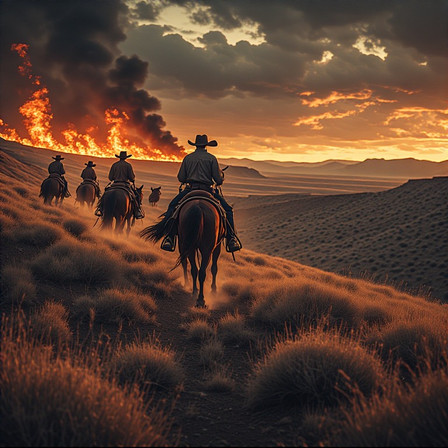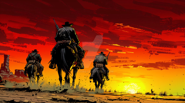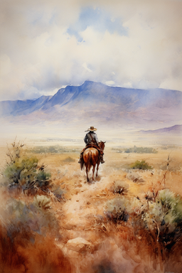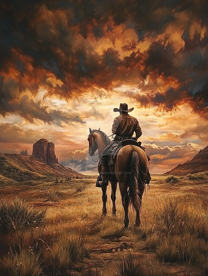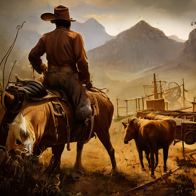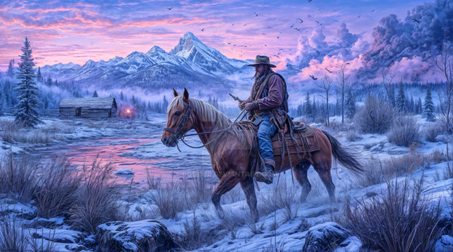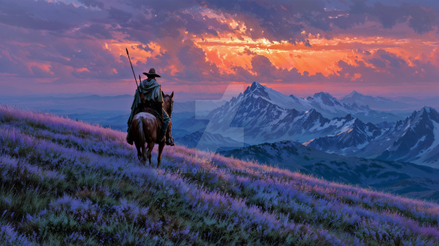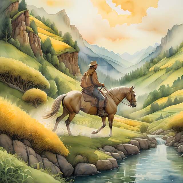 #adventure #concept #cowboy #digital #golden #horizon #hour #journey #landscape #mist #mountains #painting #reflection #solitude #sunset #tranquility #wallpaper #wallpapers #western #wilderness #aigenerated #midjourney
