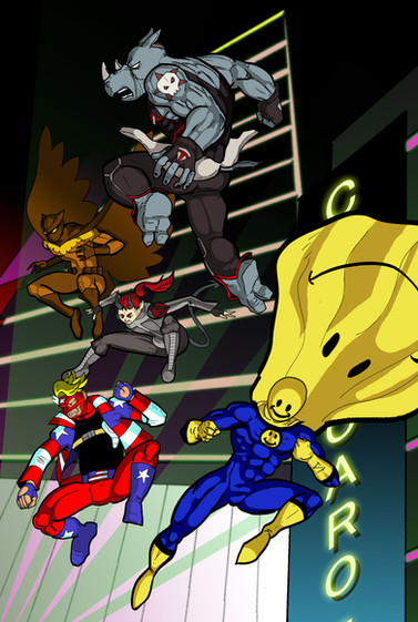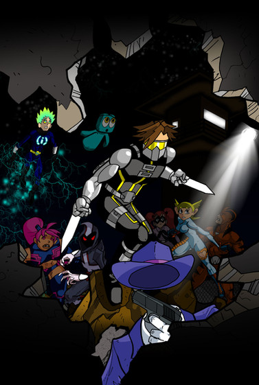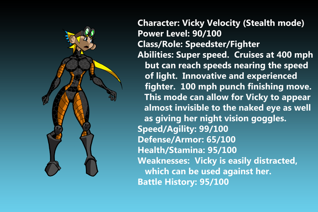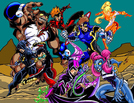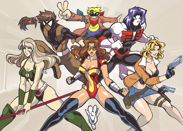 The only certainty is Cross & Wildman being friends since that was shown in AFL during their fight. I'm not entirely sure what Wildman would make of everyone else though. He'd probably see Vicky as a sort of little sister character since she's fairly young & looks quite innocent and he'd probably be willing to pull a few pranks with Suit using his own invisibility. I suppose until we know how they would all interact with each other it's almost impossible to do anything but have them posing. I like the idea of Vicky having a crush on Wireless though maybe if you do an updated version in the future you could touch on that.