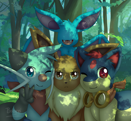 #character #cousins #eevee #eve #fanart #flashback #lance #playing #pokemon #pokemonfanart #dewott #bokurei #old #lilyarcondas