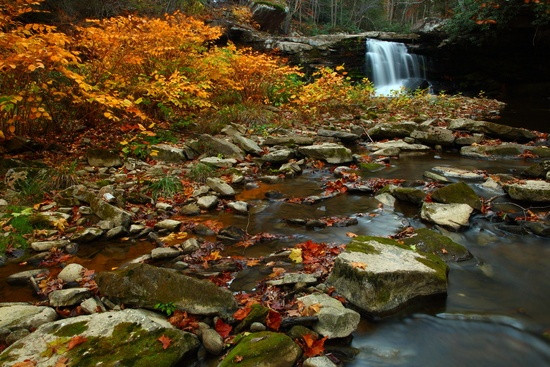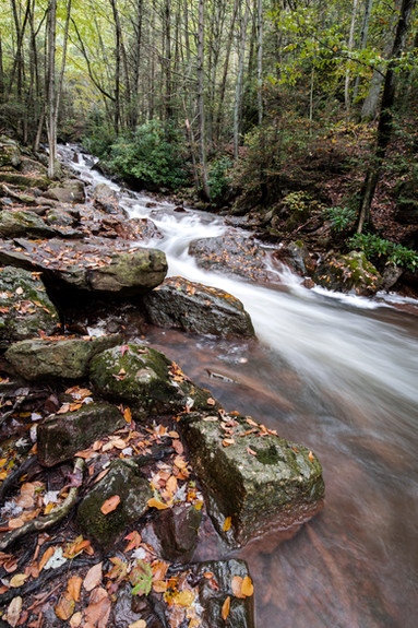 Long exposure autumn forest stream along Hawk Run, from Hickory Run State Park near White Haven, Pennsylvania (USA). HDR composite from multiple exposures.