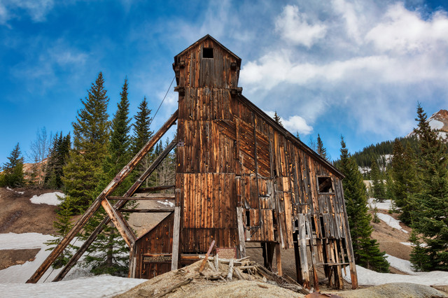 Support me on PatreonAbandoned home and rugged mountain landscape near Ouray, Colorado, USA.