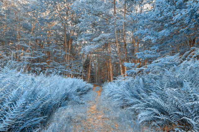 Winter pine forest trail from North Point State Park in Edgemere, Maryland (USA). HDR composite from multiple exposures, and variant of Winter Pine Trail processed with ruby red colors in the foliage for a more surreal atmosphere.Offered under a Creative Commons license / Attribution Unported. Meaning Yes for commercial use including premade backgrounds as long as you credit and link back to me. More details on my stock rules here: somadjinn.deviantart.com/journ…