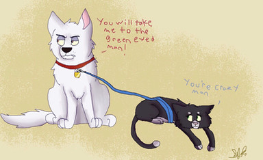 Bolt: That! Okay. You have three seconds to tell me what you've implanted in me, cat! Poison? A parasite? Poison? Oh, no, I just said that, didn't I? See, I'm all discombobulated. I can't think straight.