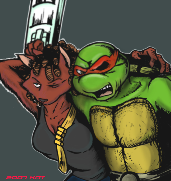 One of Shredder's Elite was captured after almost ending Raph's life in an old, old rp of mine. Donatello saved her from Leo's protective wrath when he managed to overtake her in order to save Raph's hide. Taking up Leo's sarcastic and dry dare on "You can keep her if you can get her home", Donny dragged her to the lair where she later befriended and became a spy for the turtles.Related content