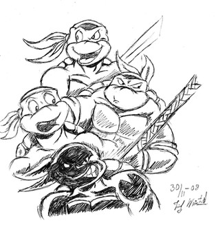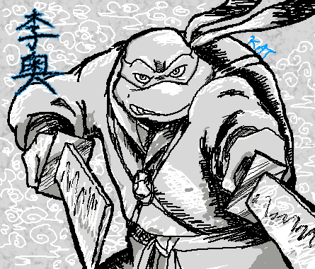 This is my first attempt at traditional chinese watercolor painting, and I couldn't help but use FireDolphin's pose of Raphael for it! That guy is just frickin' awesome with his turtles. If you wanna see the original (and I strongly suggest it), go here!---> [link] (p.s. a link will have to do until I figure out how to add the user icons again)The chinese/japanese letterings (and yes, I used both