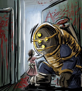 I love me some Bioshock.I'm a giant chicken when it comes to scary games, but I've managed to overcome my fears to play Bioshock. I love the story, and the characters are wonderful, and this game is such a work of art...I had to make some art of my own.