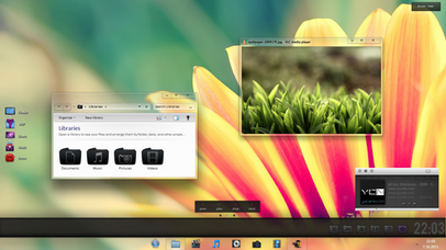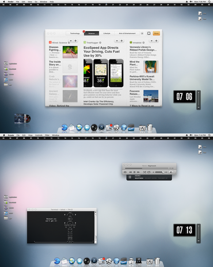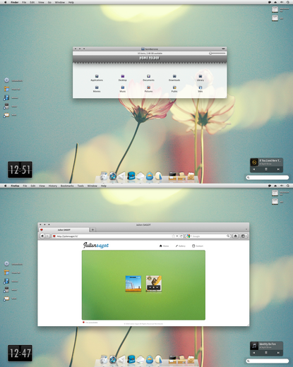 Nice shot man! What software do you use for the mac-like menus on the taskbar (Finder, File etc.). I would also be very grateful if you share the clock in the taskbar.