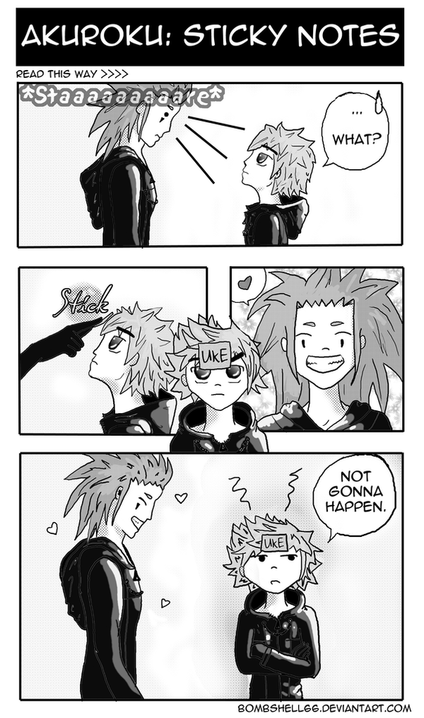 LOL <3333 Haha, I thought the sticky was gonna say "Axel's" but "Uke" is just great xDDD Roxas' face is so priceless in the last panel<3333