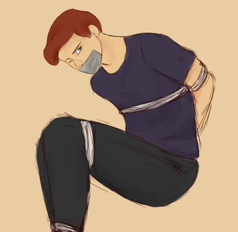 Thanks! Ah, you can always gag him more. And his feet are tied, you just can't see the rope.