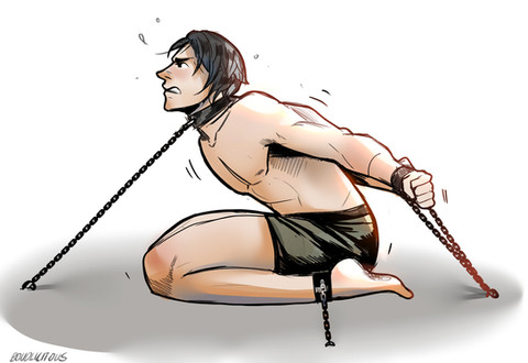But I think that the gag is not tight enough. I mean, he still can talk even with a rope in his mouth.