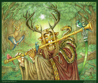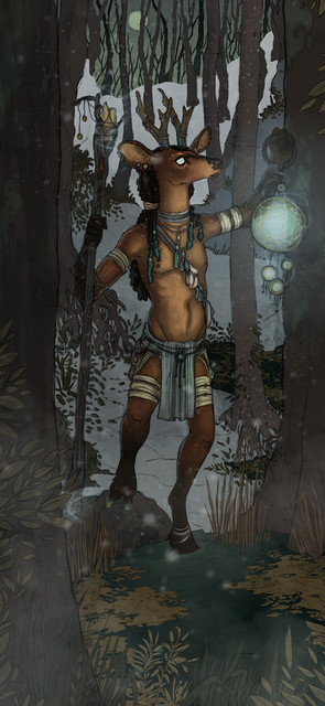 He looks incredible and has shades of Cernunos about him. I love the woodsy colour of him and the way he blends and melds with the forest behind him.