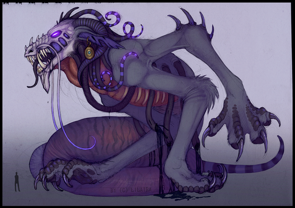 This is insanely good . To be honest, it reminds me more of a demon or mythilogical creature rather than an alien, but it's your art, so meh. It's designs like this that make me stomp around in my mind going "damn it, I wish I thought of this!"