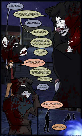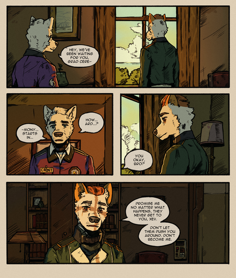 Alex, bloodied but not beaten, steps up! I love that second panel.If you like this comic and want to see more there are MORE (Twice as manny) and NEWER pages on my Patreon, your support could CHANGE THE PARADIGM OF FURRY COMICS AS WE KNOW THEM!!: www.patreon.com/bone