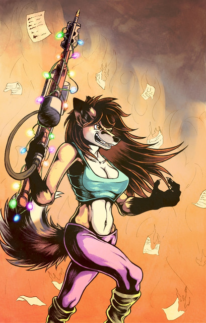 A commission of a fox chick who dresses like an anthro mash up of Lara Croft and Kim Possible. Was a lot of fun to color and what-have-you.Related content