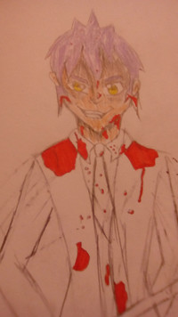 This is Sven Vollfied from Black cat that I painted. The picture I actually 'created' more than drew as I traced and edited a whole bunch of pictures together (train's body from a manga scan, Sven's head which I already edited to not be wearing an eye-patch and i hand drew all the bandages) I have the original drawing as well, shaded in pencil, and if anyone wants I can put it up too.A little back story, this was made for my fanfiction Chronos: Tainted past, broken Future on ff.net. the story is currently on hold due to my current interest in death note and the fanfiction I am writing for it. But you are free to read it anyways!