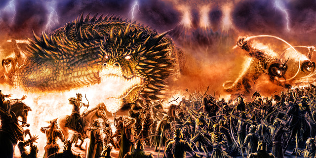 amazing picture. Love the detail and the addition of the basket of swords attached to the saddle. Background looks perfect. One issue I noticed, however, is the legs looks a little short and stumpy when compared to the head, makes the dragon look a bit disproportionate.Β