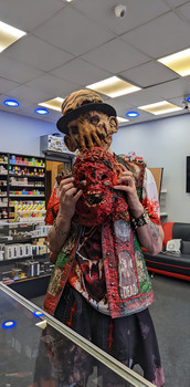 I had, in my opinion, a much better pic of my Halloween costume, but since it was texted to me from the person who took it it had a smalller file size and thus didn't translate well to PNG format. It seems that made it hard to post to DA. Oh well.Anyways, here it is! It's a pretty simple costume, just a mask, some bugs, and a tacky shirt that I'd argue was IMPROVED by said bugs. This is a Silver Shamrock mask straight from Halloween 3: Season of the Witch, one of my absolute favorite movies where a Celtic druid sets up a mass produced line of Halloween masks with Stonehenge pieces inside them that, when exposed to a specially designed TV commercial, will melt the childrens' heads into bugs and snakes in accordance with ancient rituals associated with Samhain, assisted by robots he created.