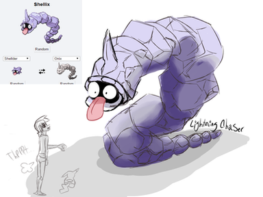 Shellix is the sad, twisted fusion created by Team Rocket not for battle, but for mining purposes. Shellders and Cloysters are kept in mass numbers in secret facilities all over the world creating pearls and sold in black markets for quick profits for Team Rocket. Although Shellder and Onix is an odd mix, Team Rocket thought ahead to make sure the result, Shellix, would be profitable as a force outside of battle. Onix, known to bury for miles underground, would make for the body of Shellix, and Shellder's properties such as having a shell stronger than diamond and ability to create precious material equals a great miner.