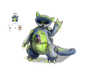 Only one organization could create such abominations and bring them about the world...Yes, Team Rocket is by and large responsible for the genetic modifications and birth of Pokemon fusions! During the Mewtwo project, a rogue sect of the development team went about to utilize Team Rocket's vast resources and funds to entertain their dark visions. As if Mewtwo wasn't enough, these scientists continued and spliced genetic codes from their already large collection of specimen to create abominations...And this is one of them.ROCKET DEX: