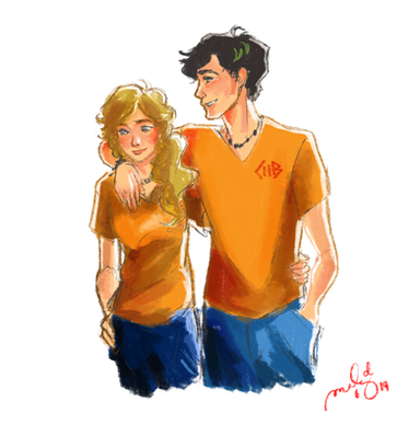 I find it a little bit Β strange that Annabeth's skin is darker than Percy's. Isn't it more logical the other way around? I mean, Percy is a sea kid. A beach boy Β