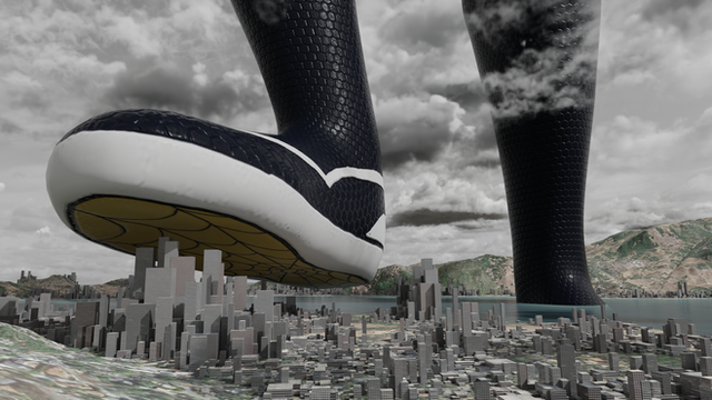 Oh that boot design is really cool. A multi mile tall giantess wearing heels just adds to the whole sense of overkill. Almost even looks like it's padded add the bottom, guess she's gotta be comfy when stomping out settlements