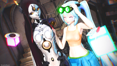 OK SO the story behind this is i merged two models together and put on some random accessories on her and then changed colors and added filters in photoshop and it just straight up looks like a model that couldve been made socredits to TDA , SEGA