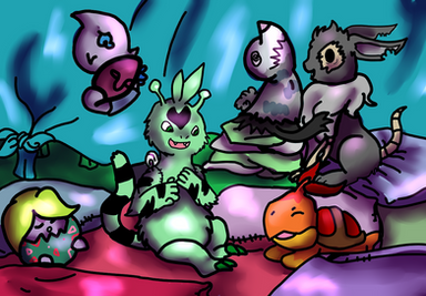 Luci rolled back onto her stomach. She tapped her paws a few times and hummed a quick tune. She looked around at the pokemon that sat around her. They were all different. "Soooooooo....how did you guys end up here?"