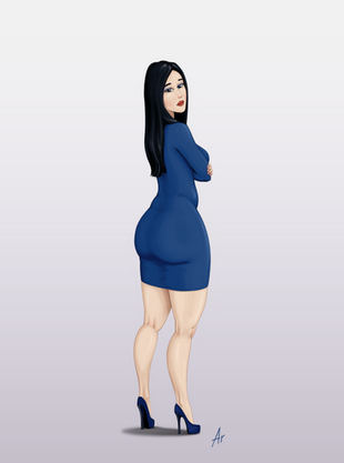 This is beautiful work, the lineart and colouring is really clean, and you adapted her to a more cartoony style really nicely. The huge curves look great as well. I'd love to see more like this.