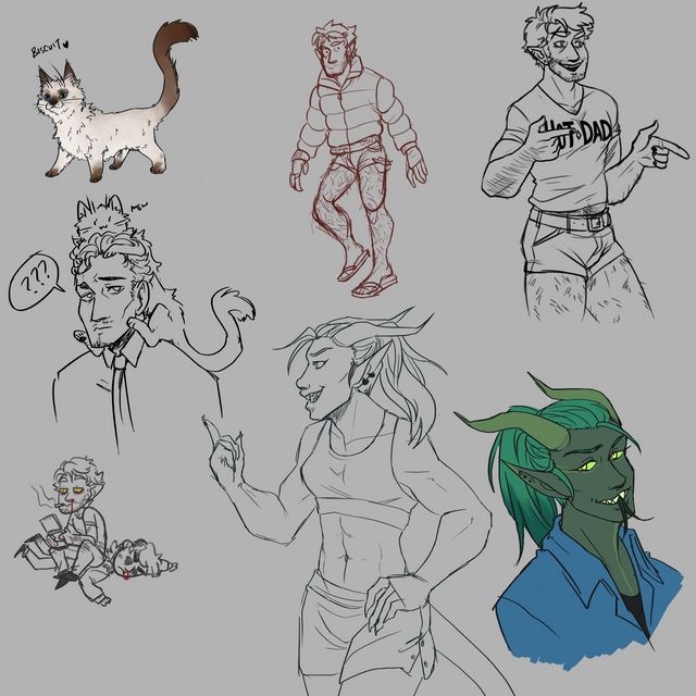 Another sketchdump~Trying some new techniques and experimenting with grayscale stuff. I'm normally not a big fan of using grayscale, I tend to find it to be a bit more effort than it's worth when coloring a full piece, however I've started doing it with sketches and small doodles just to get out of my comfort zone and also just try some new ways to sketch things out without having to spend too much time and effort, haha.