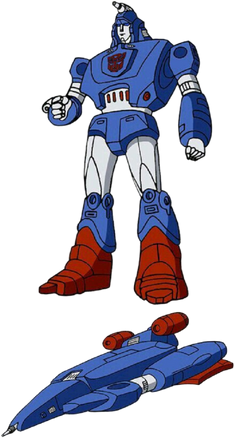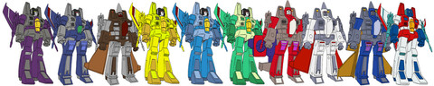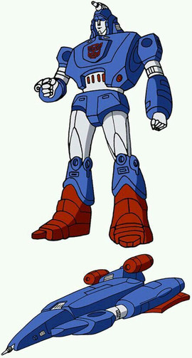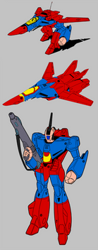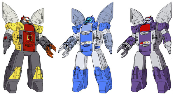 This here is a little collage of Defcon, or "Devcon" if you prefer. His name never really came up in any print form like a comic or anything, so it's become rather subjective what his name should be. Appearantly, back in '85 the name "Defcon" was too nuclear-sounding for a kid's show (the name "Megatron" barely made the cut for the same reason), so it was just modified to mean basically the same thing. Fast-forward twenty-two years, and that's hardly a sensible reason anymore, plus "devcon" isn't even a word, while "Defcon" is a pretty bad-ass thing to name yourself, and it was what I figured his name was all along, so that's what I called him anyway.The guy never had a toy made of him at all, and only appeared in one episode as an inter-galatic bounty hunter who was no-nonsene, and didn't like the company of slimey aliens despite helping them out. In that episode he transformed into some kind of surf-board, which isn't the coolest thing ever, but bonus points for making it look Cybertronian, or at least alien.