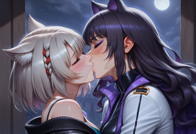 #anime #fanart #videogamefanart #catgirl #faunus #kiss #yuri #crossoverfanart #xenobladechronicles #blakebelladonna #rwby #rwbyfanart #xenobladefanart #xenobladechronicles3 #mio_xenoblade