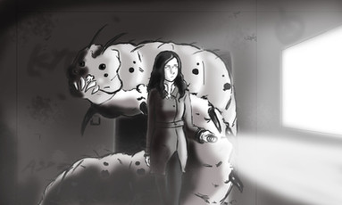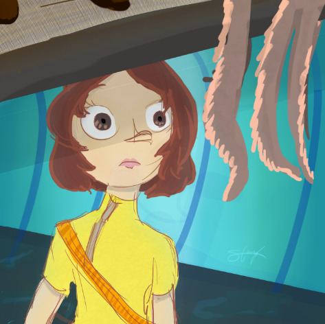Actually, I made her pat the eel on purpose XD The idea when making this eel was to at first give the impression it was a scary and mean monster, but when you paid more attention, you'd realize it was actually a scared, disoriented and, quite unfortunately, deadly creature. I tried to imply this by not giving the monster and the alien girl explicitly angry expressions and by making her simultaneously try to calm it down and raise a weapon to protect herself... But maybe that was something too ambitious to show on a single scene or I just didn't put enough elements in too show it, d'oh XD