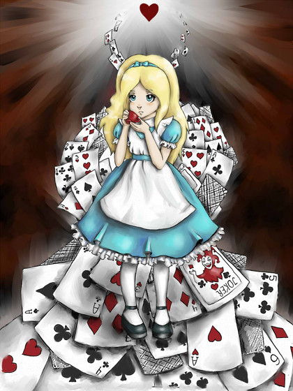 Absolutely love this piece. The colors are so bright and vivid. Love the perspective in this with Alice walking into her own wonderland. Great idea!