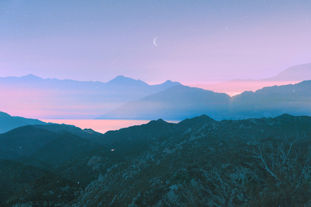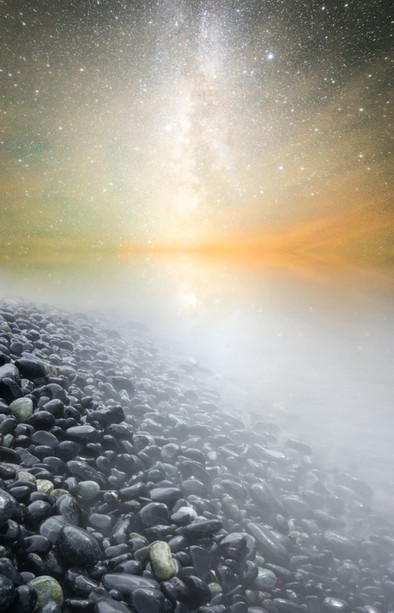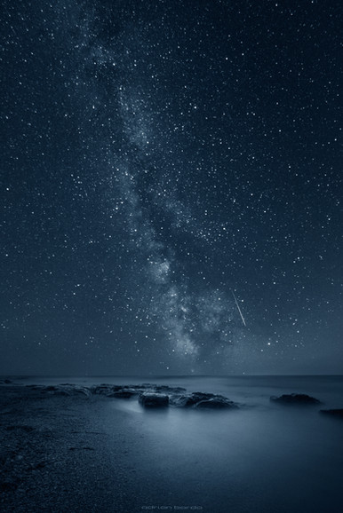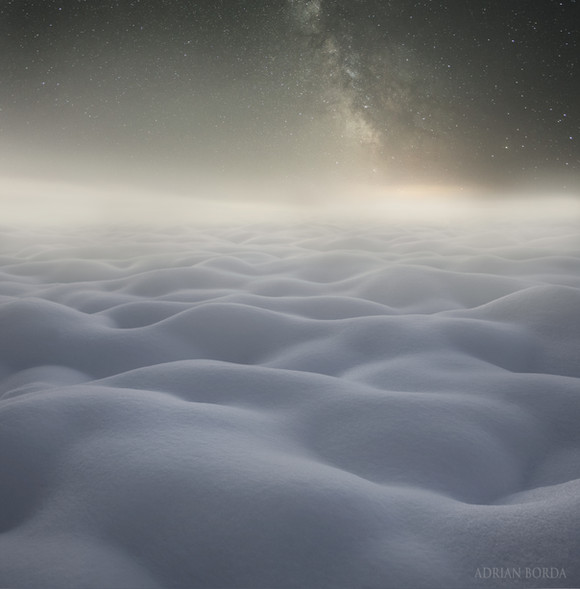 The red sky under the Milky Way warms just a little the whipped cream smeared on the sleepy hills, but it will be a good day...