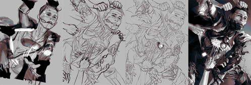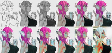Always happy to see progression shots like this, though I can't help but notice that when you're that good they start of as sketches that are 95% done and you spend the rest of the time just filling in color haha