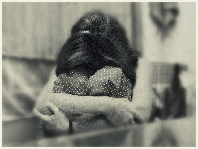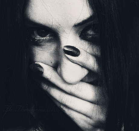 Like she's trying to hold it together, while she's put in the spotlight. Such a great pose! I love the way her hands shield her eyes and create that shadow and how she grips her lips. It's a powerful image.
