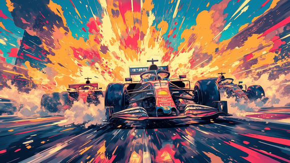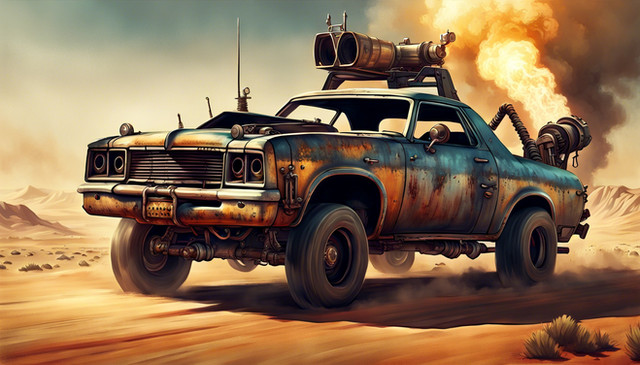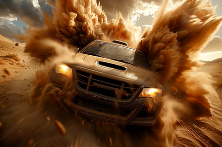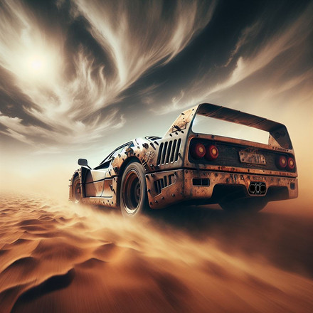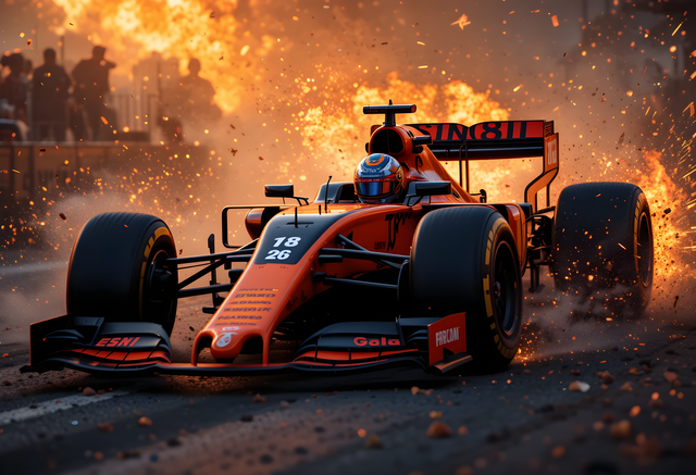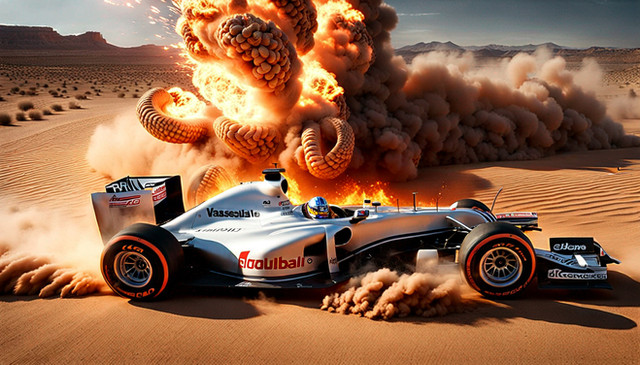 #ai #dreamup #digitalart #wallpaper #photography #car #vehicle #racing #fanart #desert #dust #explosion #race #sunset #surreal #formula_one #fire #ai_art
