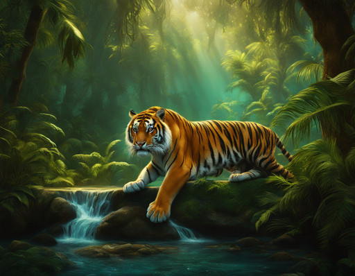 #digitalart #fantasyart #animal #feline #jungle #tiger #wildlife #animalart #ai #dreamup #cartoon #digitalpainting #forest #characterdesign #portrait #warrior #fantasycharacter #cat #ai_art
